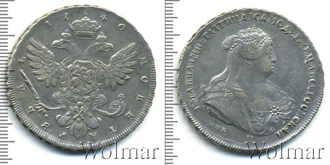Гербовая эмблема России, представляющая собой изображение двуглавого орла со скипетром и державой. Вверху слева отметка о дате выпуска этой партии монет «1740». В нижней части диска расположена надпись (слева выгравировано «РУБЛЬ», а справа «МОНЕТА») о номинале.