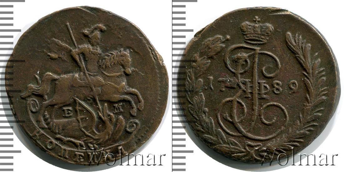 Большую часть диска монеты занимает детально прорисованный вензель императрицы Екатерины Второй. Над ним Императорская корона России. В центре отмечена дата эмиссии «1789», а внизу узор из лавровой и пальмовой ветвей.