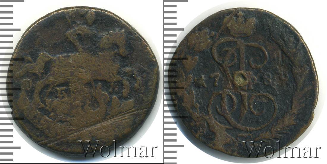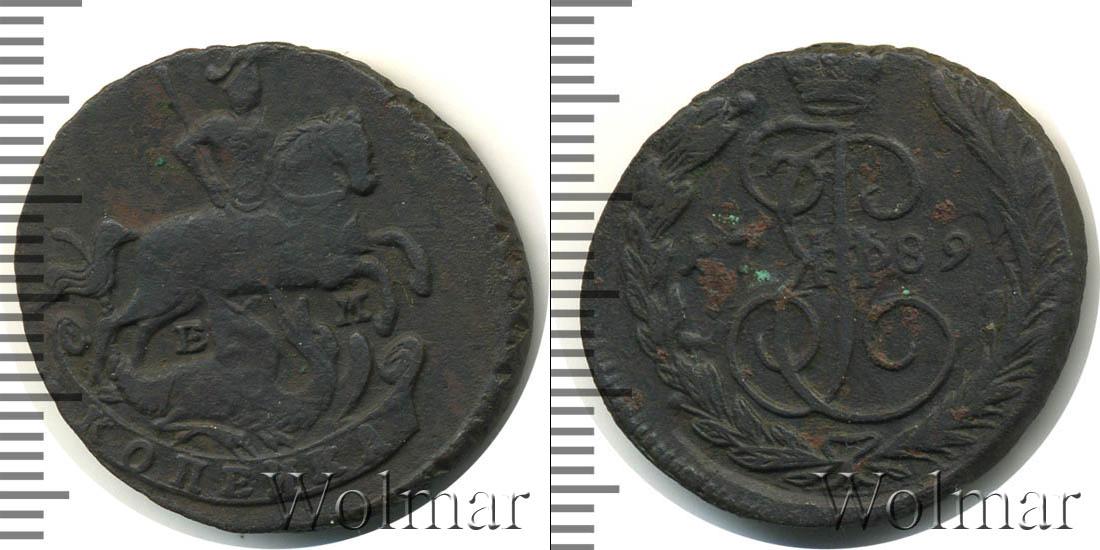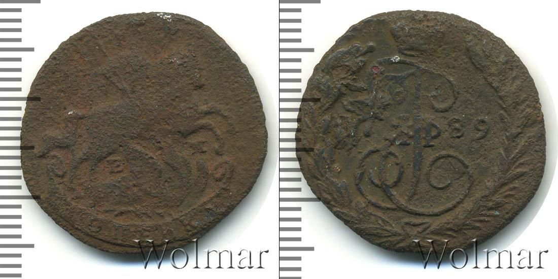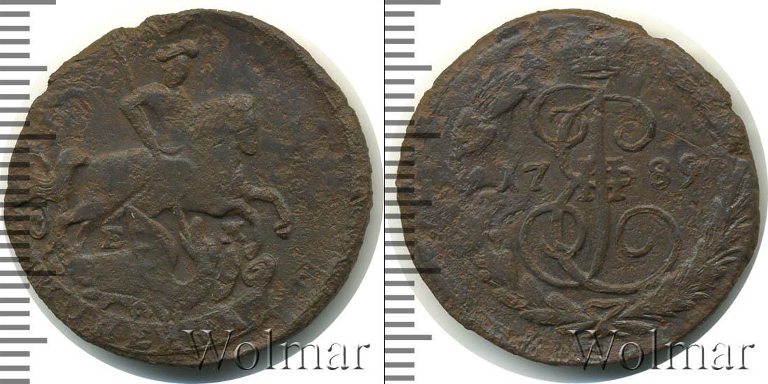 Большую часть диска монеты занимает детально прорисованный вензель императрицы Екатерины Второй. Над ним Императорская корона России. В центре отмечена дата эмиссии «1789», а внизу узор из лавровой и пальмовой ветвей.