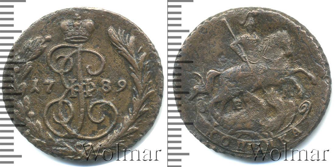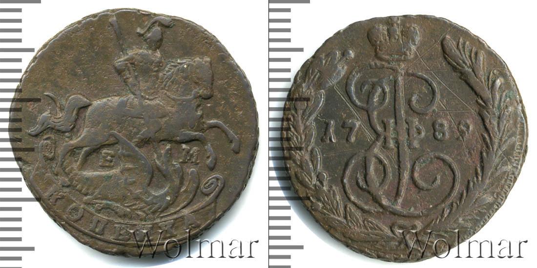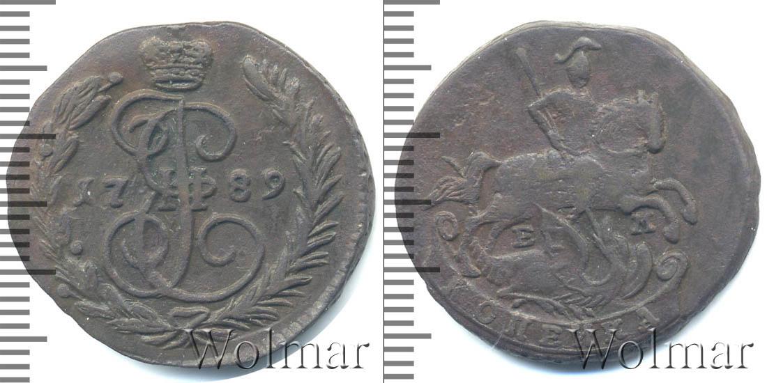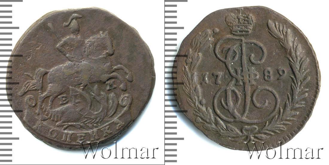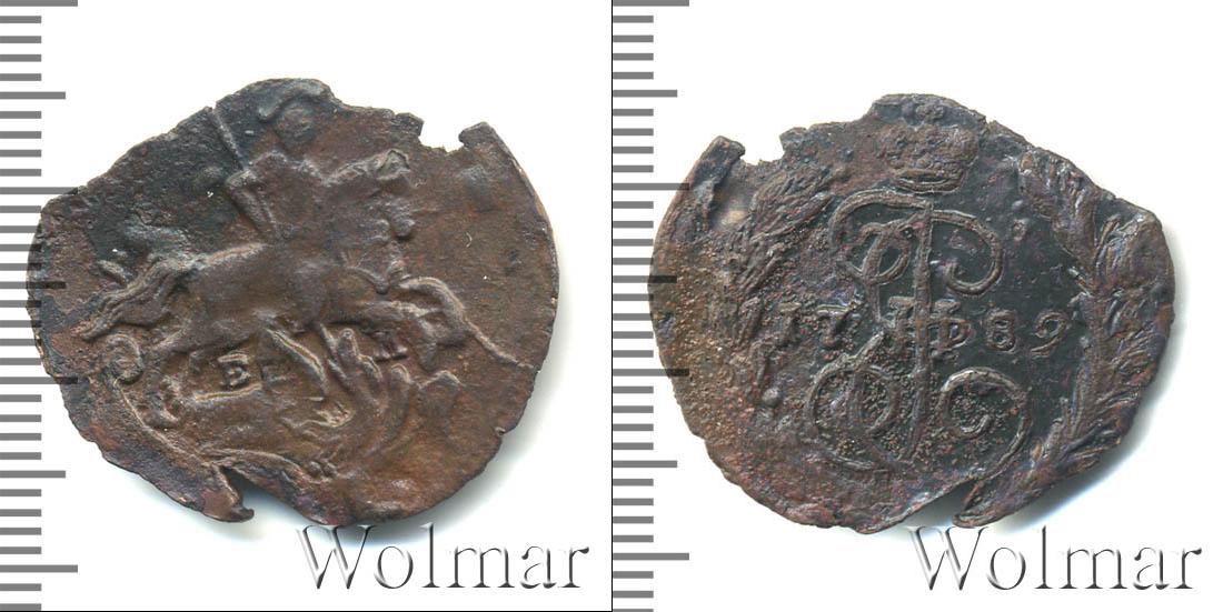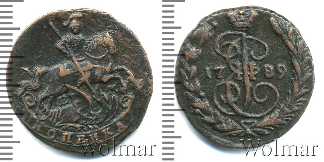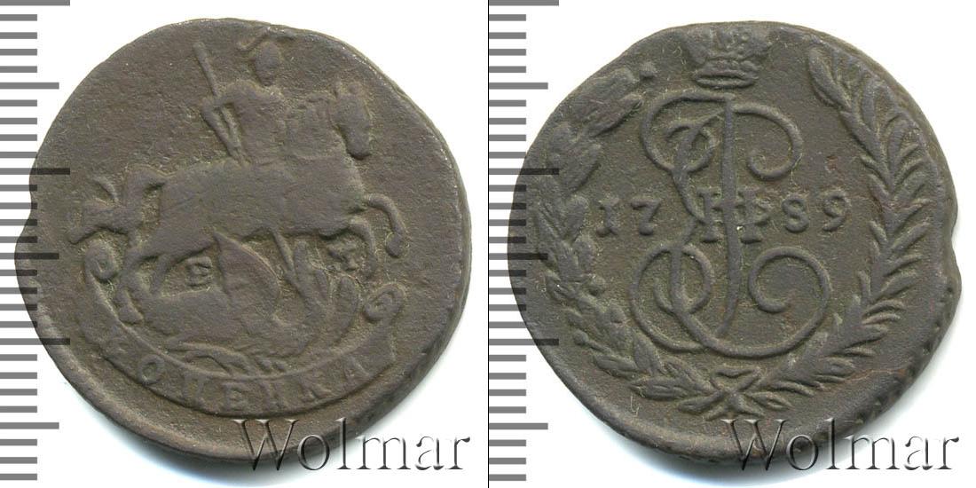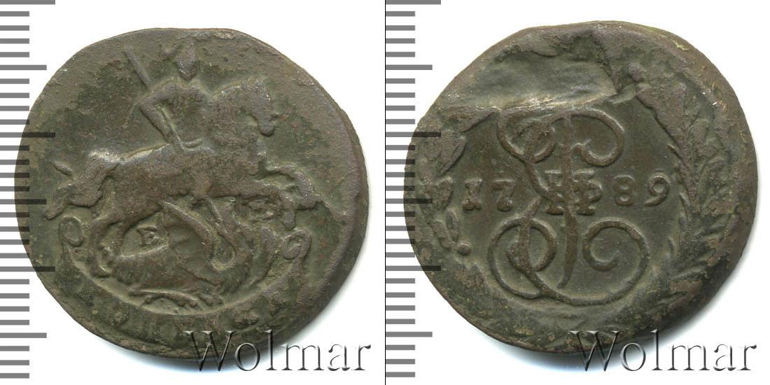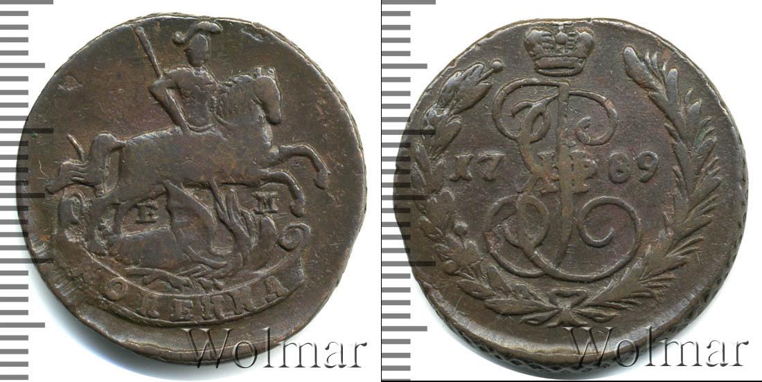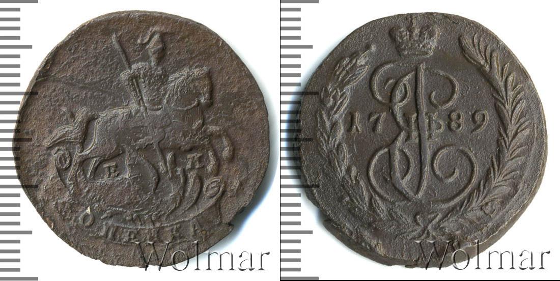 Большую часть диска монеты занимает детально прорисованный вензель императрицы Екатерины Второй. Над ним Императорская корона России. В центре отмечена дата эмиссии «1789», а внизу узор из лавровой и пальмовой ветвей.