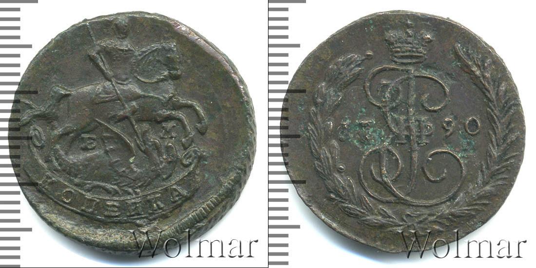 По центру диска расположена монограмма имени Екатерины II. Вензель разделяет надпись о дате чеканки монеты «1790». Внизу изображены лавровая и пальмовая ветви, перевязанные лентой.