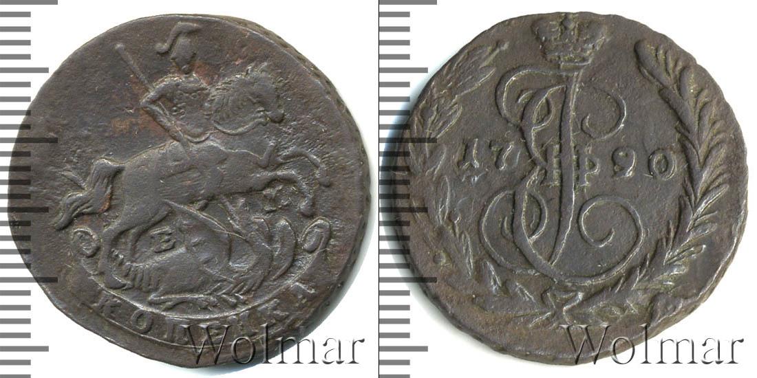 По центру диска расположена монограмма имени Екатерины II. Вензель разделяет надпись о дате чеканки монеты «1790». Внизу изображены лавровая и пальмовая ветви, перевязанные лентой.