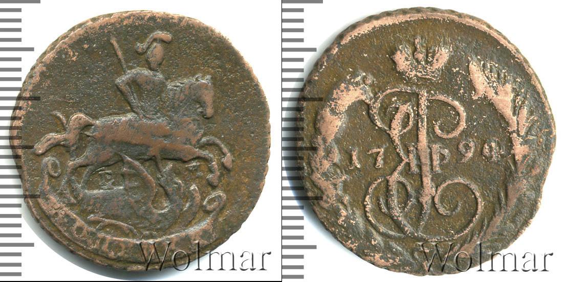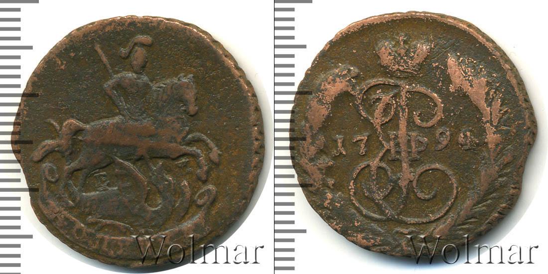В нижней части диска узор из лавровой и пальмовой ветвей (перевязанных лентой). В центре показан вензель императрицы Екатерины Великой, разделяющий надпись «1794». Это отметка о дате эмиссии партии.