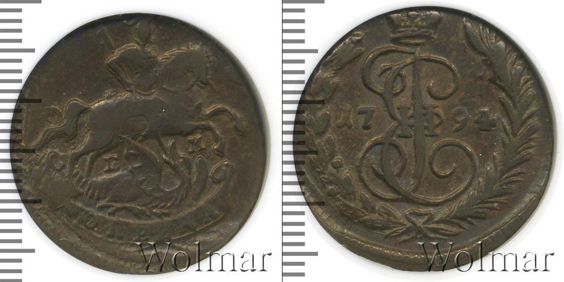 В нижней части диска узор из лавровой и пальмовой ветвей (перевязанных лентой). В центре показан вензель императрицы Екатерины Великой, разделяющий надпись «1794». Это отметка о дате эмиссии партии.