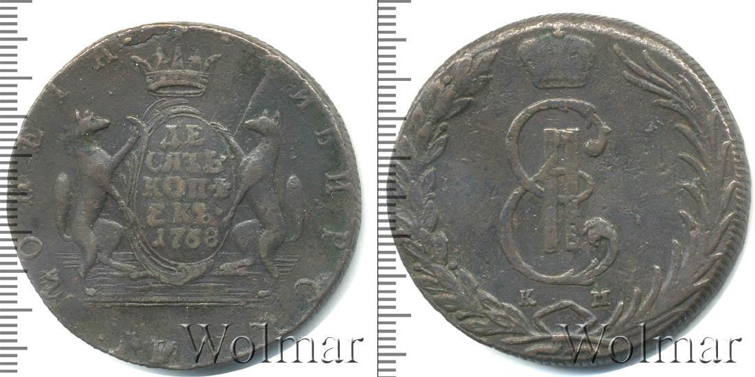 Цена монеты 10 копеек 1768 года Сибирь — Екатерина II в городе Москва на сегодня, 12 марта 2026 года