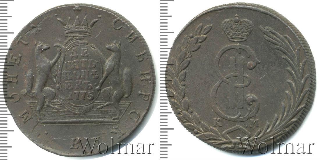 На картуше по центру диска отчеканены номинал и дата эмиссии монеты «ДЕСЯТЬ КОПЕЕК 1775». Картуш держат два соболя. Также на диске расположена надпись: «МОНЕТА СИБИРСКАЯ» - вдоль канта слева и справа от изображения соболей.