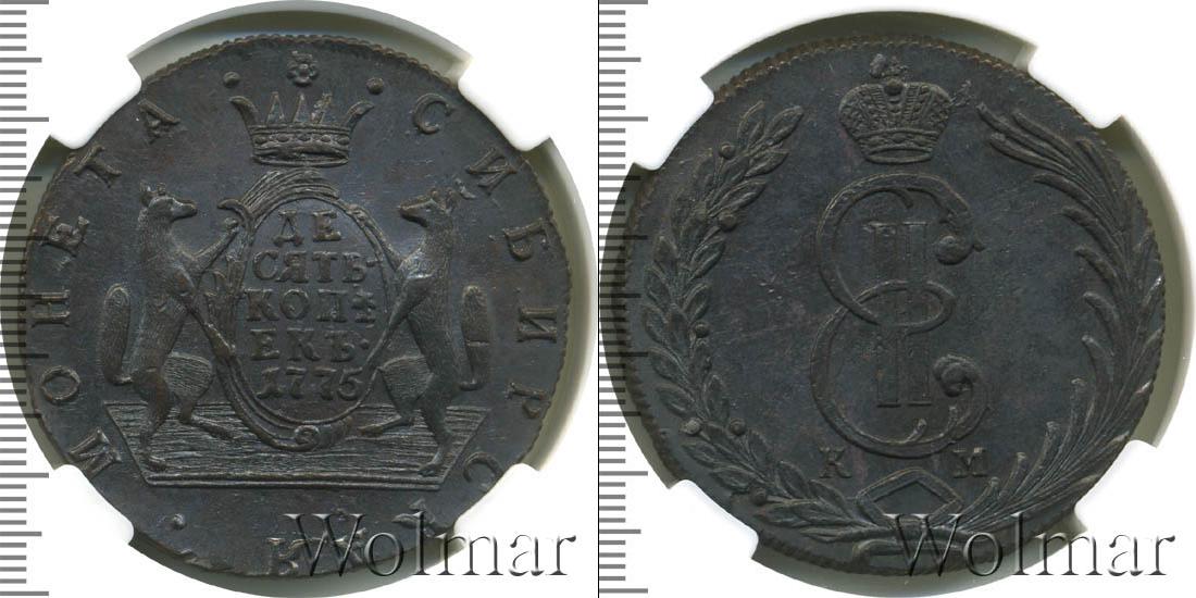 Цена монеты 10 копеек 1775 года Сибирь — Екатерина II в городе Москва на сегодня, 12 марта 2026 года