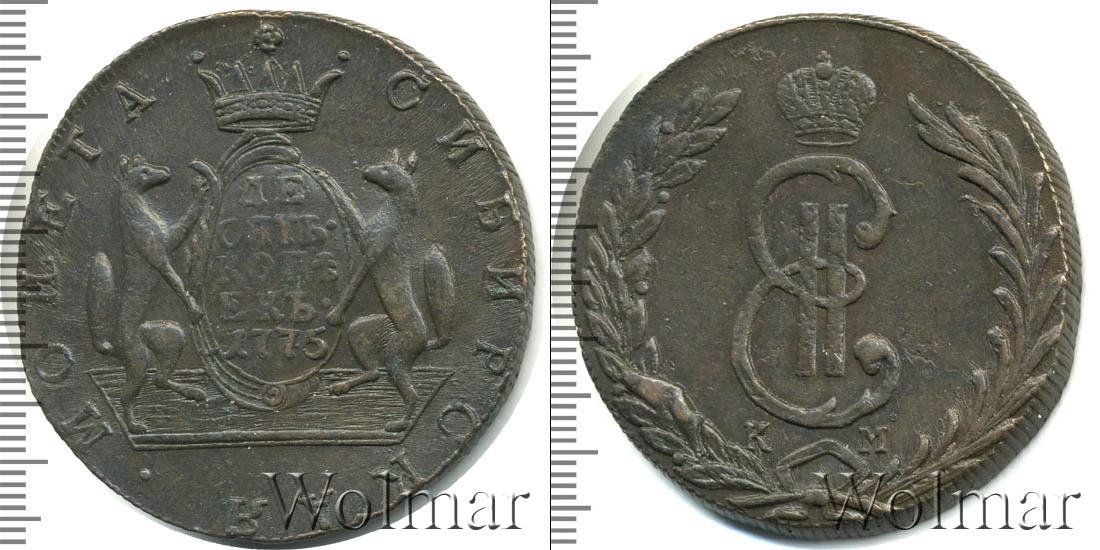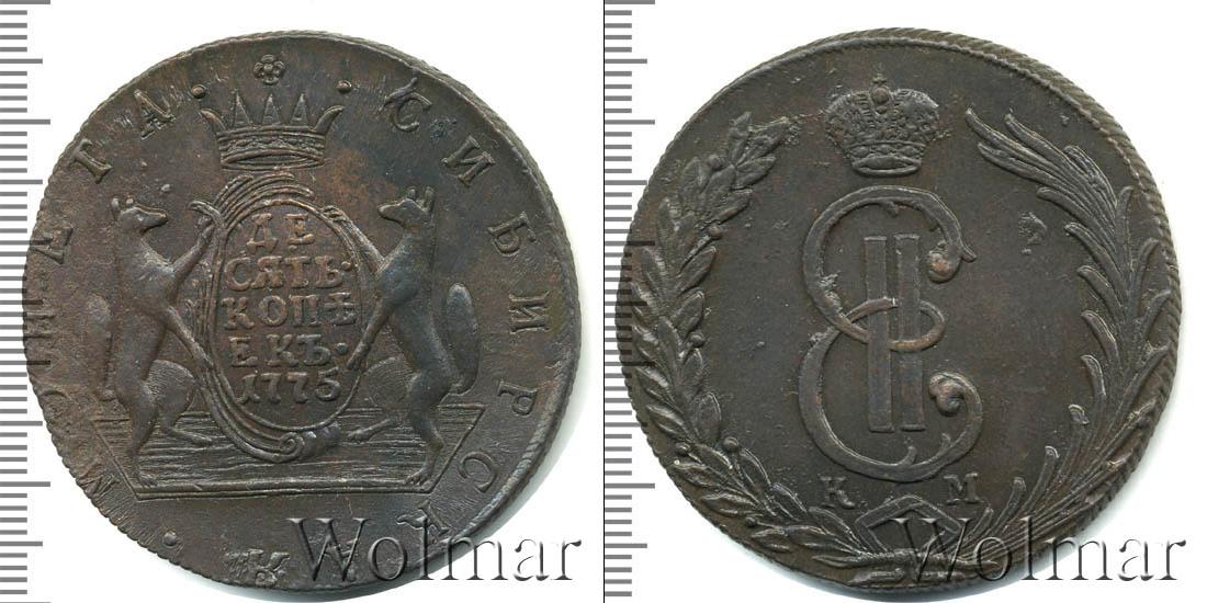 На картуше по центру диска отчеканены номинал и дата эмиссии монеты «ДЕСЯТЬ КОПЕЕК 1775». Картуш держат два соболя. Также на диске расположена надпись: «МОНЕТА СИБИРСКАЯ» - вдоль канта слева и справа от изображения соболей.