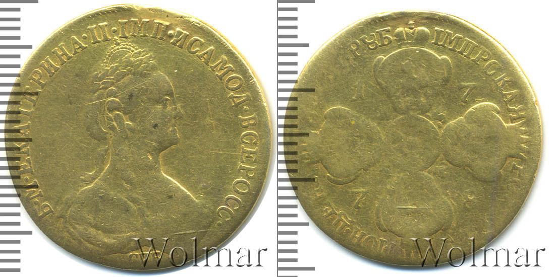 Вдоль канта идет зубчатый узор. По центру портрет Екатерины Великой. Вверху надпись: Б.М.ЕКАТЕРИНА.II.ИМП.ИСАМОД.ВСЕРОС. Также на диске отмечены СПМ (монетный двор) и «T.I.» (инициалы минцмейстера).