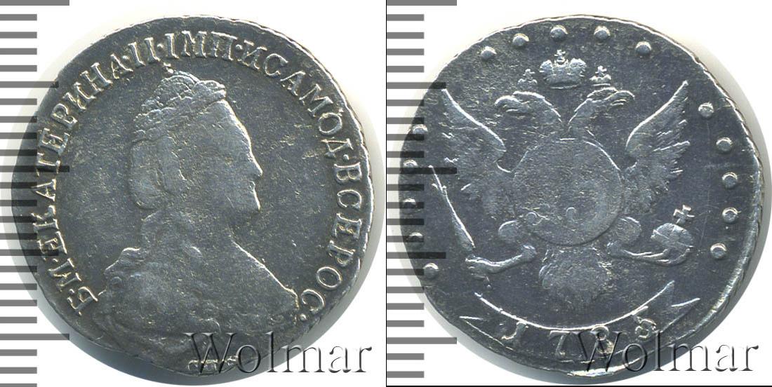 Монета отчеканена из серебра (проба 750/1000). С лицевой стороны монеты расположен портрет Екатерины Великой. Ниже отмечен монетный двор «С.П.Б.». В верхней части диска начертано: Б.М.ЕКАТЕРИНА.II.ИМП.ИСАМОД.ВСЕРОС.