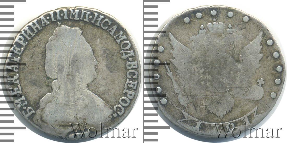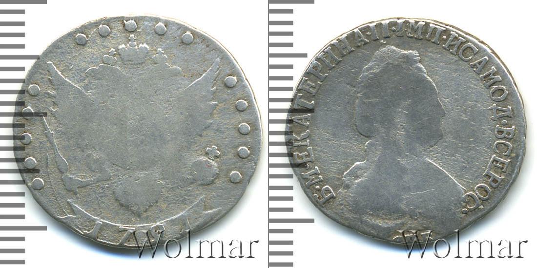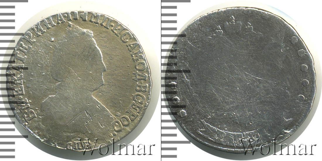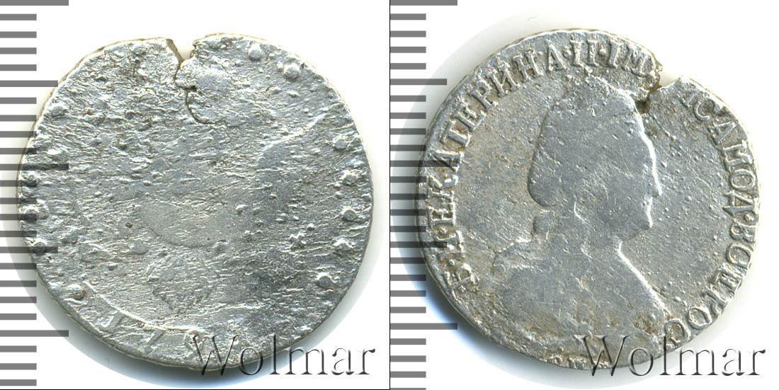 Масса монеты составляет 3,56 г., а диаметр равен 22 мм. По центру портрет Екатерины Великой. Вверху мы видим надпись: Б.М.ЕКАТЕРИНА.II.ИМП.ИСАМОД.ВСЕРОС, а под портретом указаны буквы «СПБ».