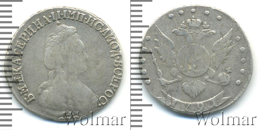 Масса монеты составляет 3,56 г., а диаметр равен 22 мм. По центру портрет Екатерины Великой. Вверху мы видим надпись: Б.М.ЕКАТЕРИНА.II.ИМП.ИСАМОД.ВСЕРОС, а под портретом указаны буквы «СПБ».