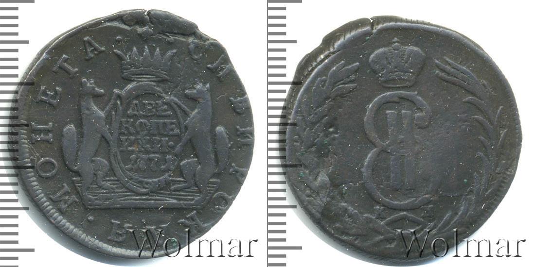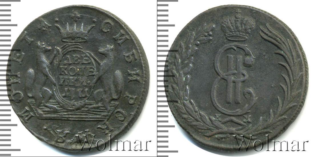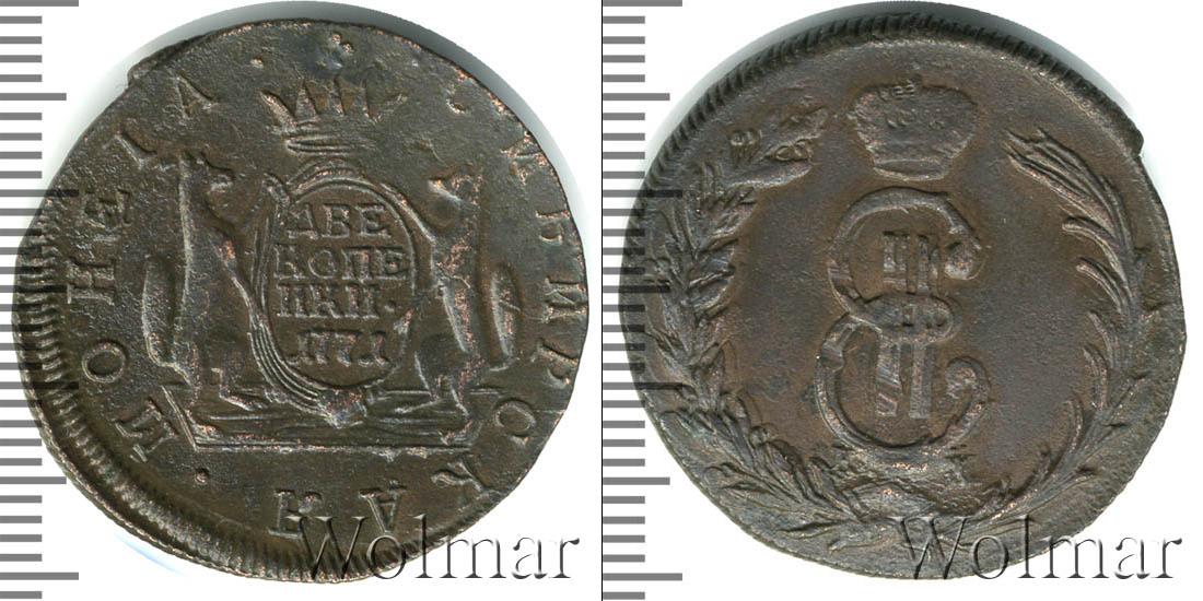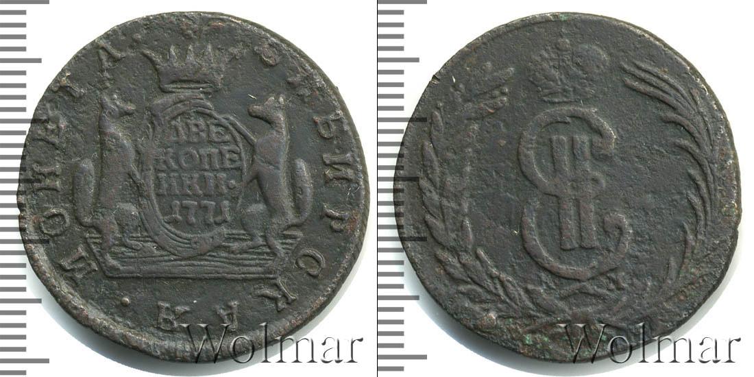 На картуше по центру диска отчеканены номинал и дата эмиссии монеты «ДВЕ КОПЕЙКИ 1771». Картуш держат два соболя. Также на диске расположена надпись: «МОНЕТА СИБИРСКАЯ» - вдоль канта слева и справа от изображения соболей.