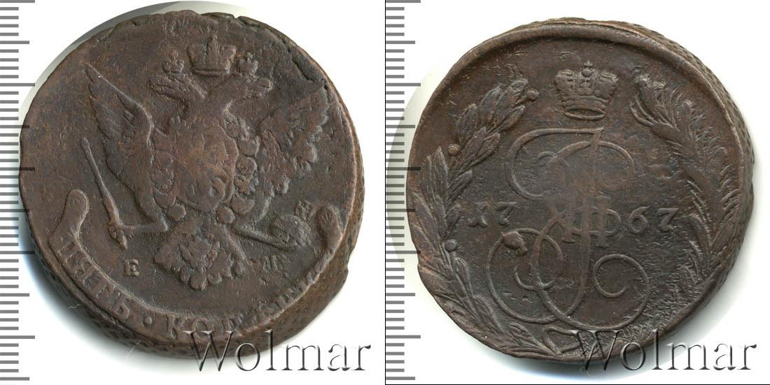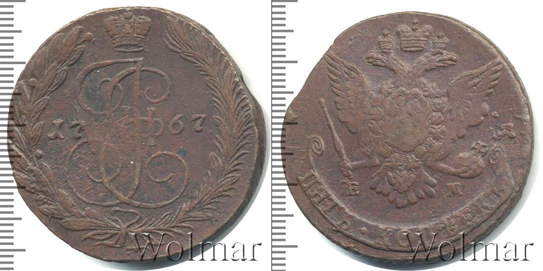 Масса готового изделия составляет 51,2 г., а диаметр равен 42,5 мм. В центре гербовое изображение Российской Империи. Ниже отмечен монетный двор «ЕМ», а внизу диска лента с отметкой о номинале «ПЯТЬ КОПЕЕК».
