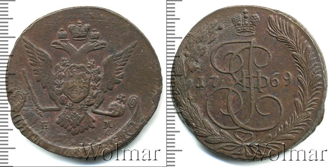 Большую часть диска занимает детально прорисованная монограмма императрицы Екатерины Второй. Над ним Императорская корона России. В центре отмечена дата эмиссии «1769», а внизу узор из лавровой и пальмовой ветвей.