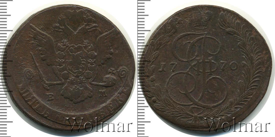 Екатеринбургский монетный двор. Биткин №# 661.619, "орёл образца 1770-1777 гг.", тираж 48 479 920, Уздеников №# 2715. Wolmar # 155/18. 5 копеек ЕМ