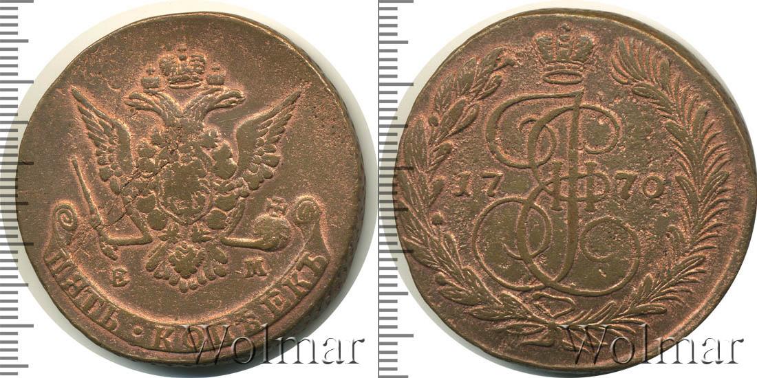 Цена монеты 5 копеек 1770 года в городе Москва на сегодня, 16 марта 2026 года