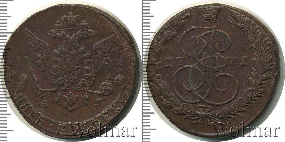 Екатеринбургский монетный двор. Биткин №# 661.620а, "орёл образца 1770-1777 гг.", тираж 57 053 400, Уздеников №# 2719. Wolmar # 155/19. 5 копеек ЕМ