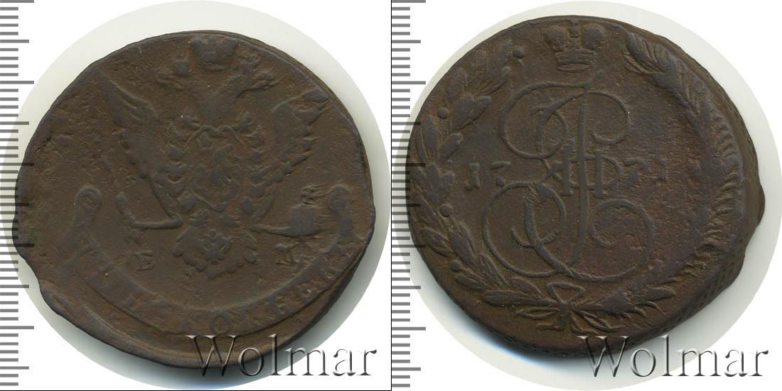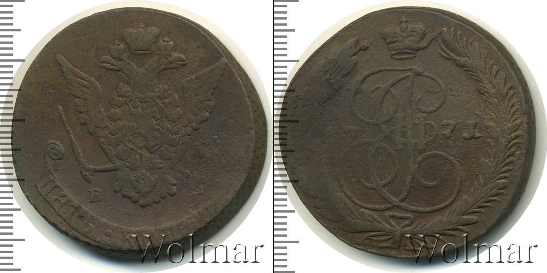Екатеринбургский монетный двор. Биткин №# 661.620а, "орёл образца 1770-1777 гг.", тираж 57 053 400, Уздеников №# 2719. Wolmar # 155/19. 5 копеек ЕМ