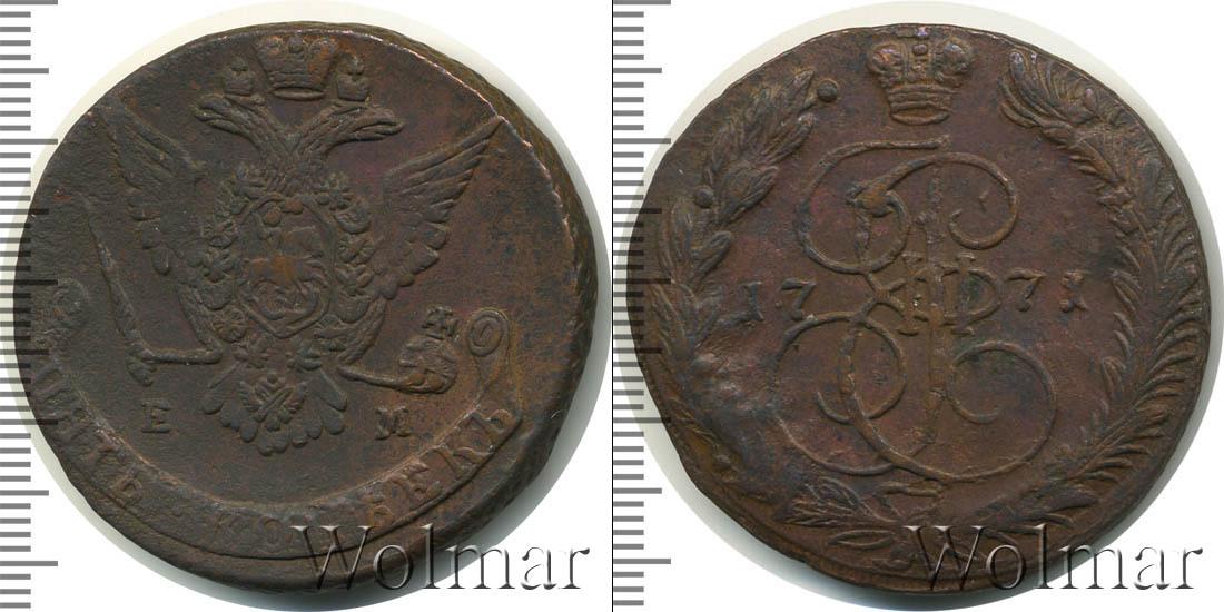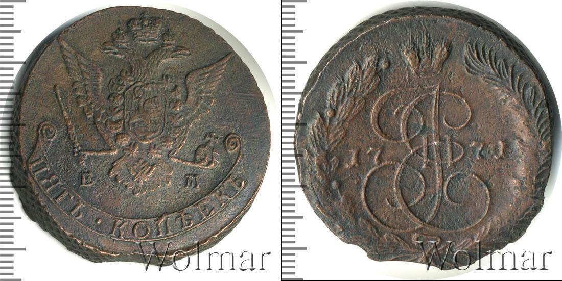 Екатеринбургский монетный двор. Биткин №# 661.620а, "орёл образца 1770-1777 гг.", тираж 57 053 400, Уздеников №# 2719. Wolmar # 155/19. 5 копеек ЕМ