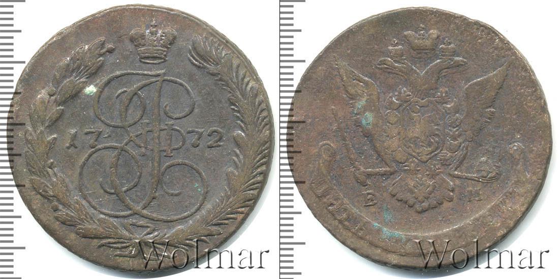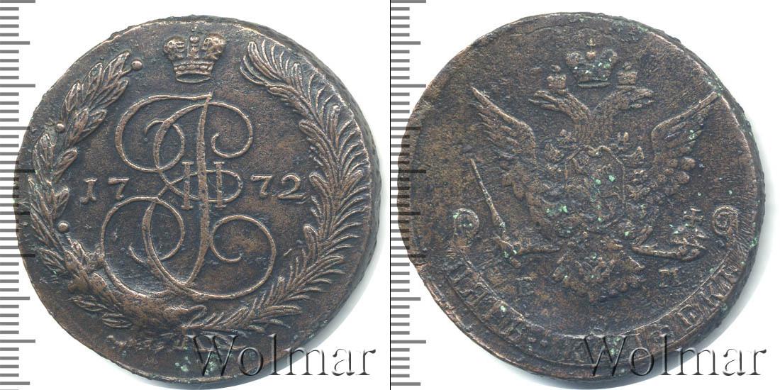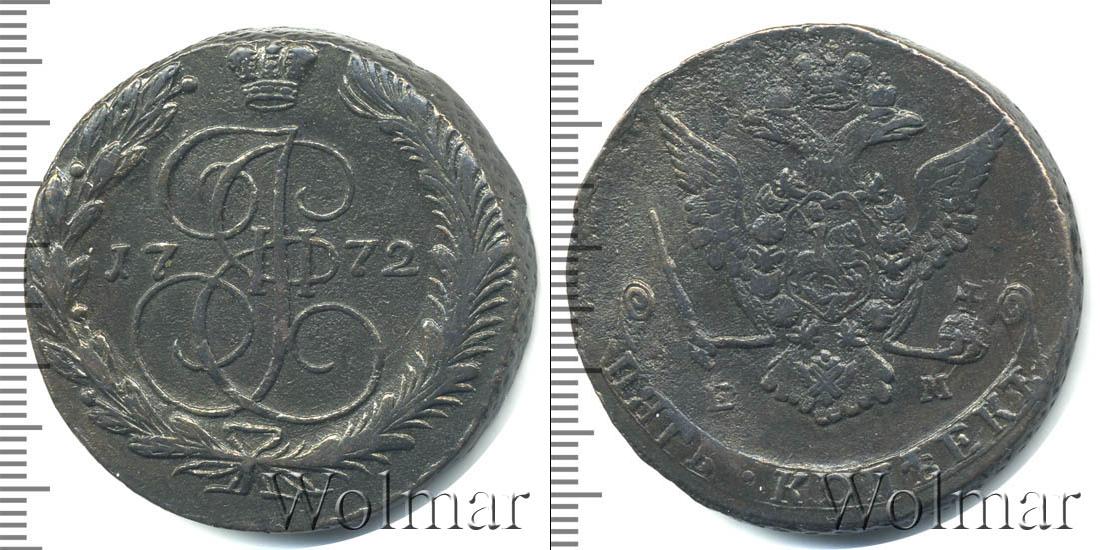 По центру расположена монограмма имени Екатерины II (вензельное изображение с Большой короной Российской Империи). Вензель разделяет надпись о дате чеканки «1772». Внизу изображены лавровая и пальмовая ветви.