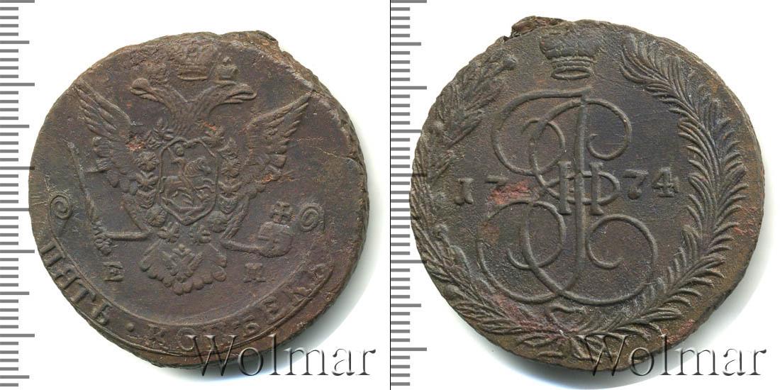 Цена монеты 5 копеек 1774 года в городе Москва на сегодня, 01 января 2026 года