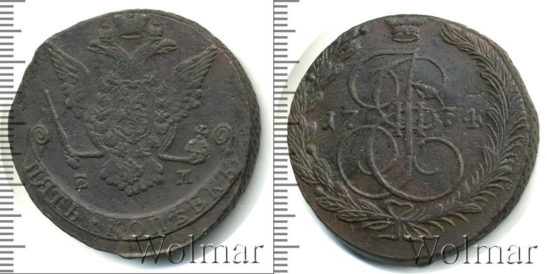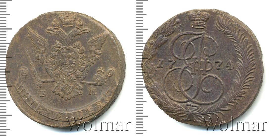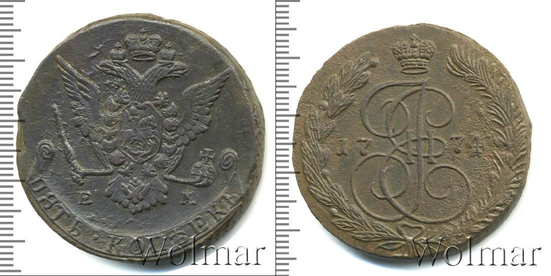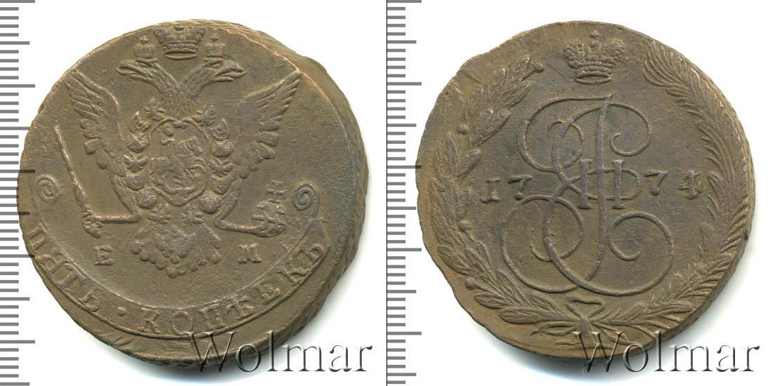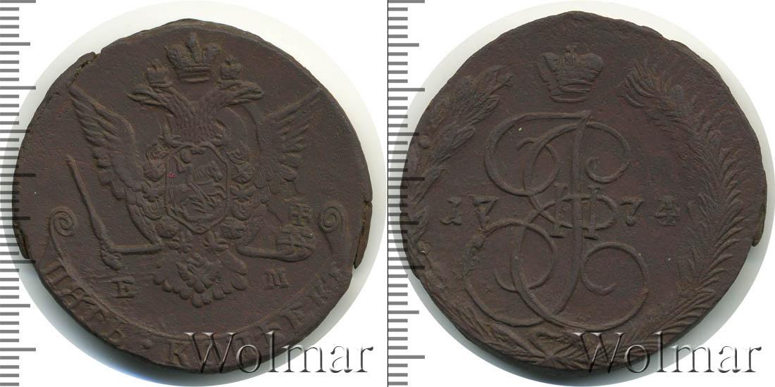 Екатеринбургский монетный двор. Биткин №# 661.623а, "орёл образца 1770-1777 гг.", тираж 14 535 432, Уздеников №# 2732. Wolmar # 155/22. 5 копеек ЕМ