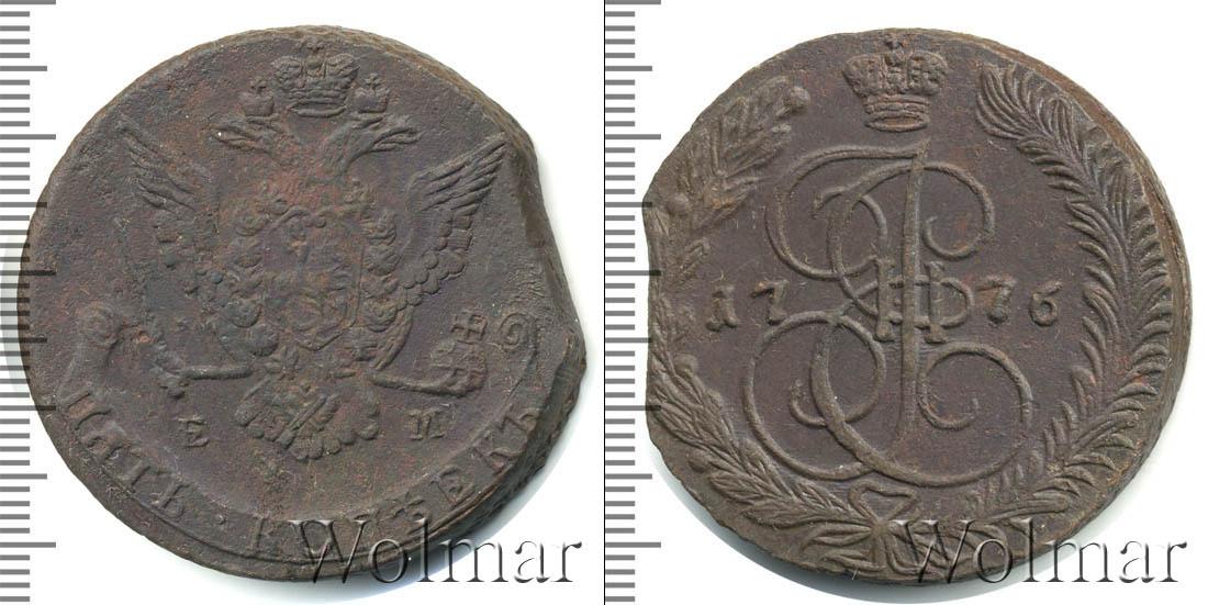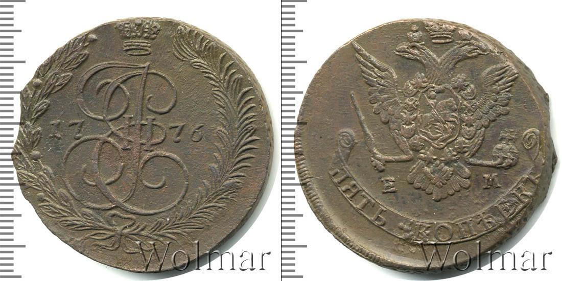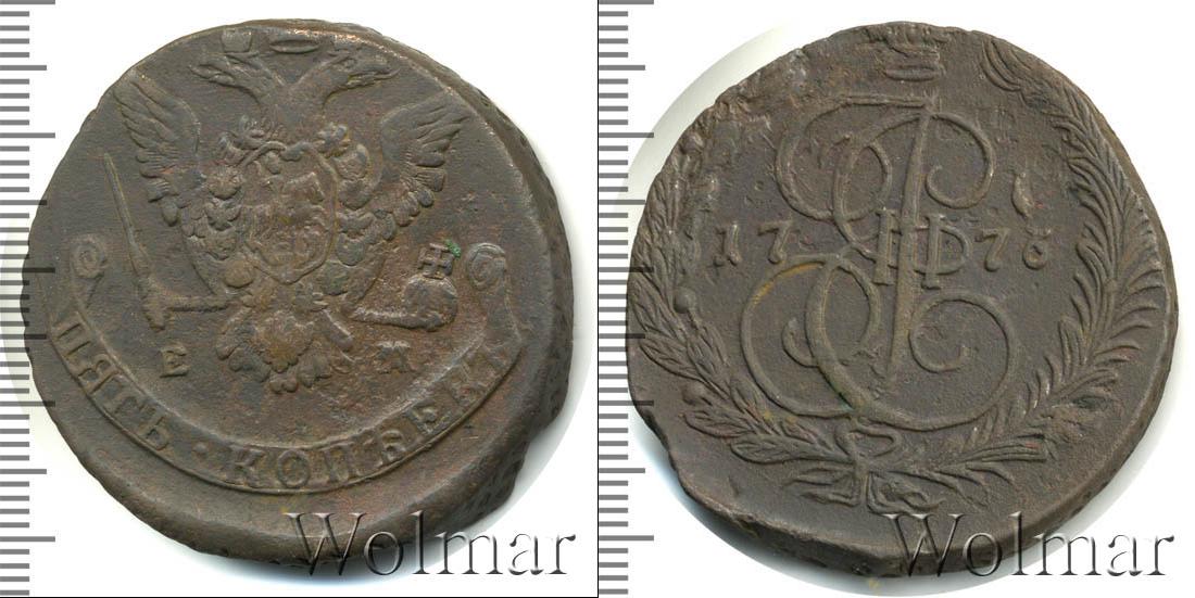 Екатеринбургский монетный двор. Биткин №# 661.624, "орёл образца 1770-1777 гг.", тираж 30 487 248, Уздеников №# 2735. По каталогу Wolmar # 155/23. 5 копеек ЕМ