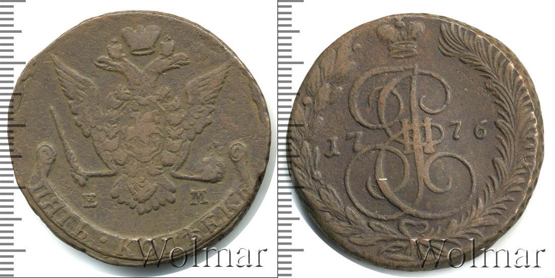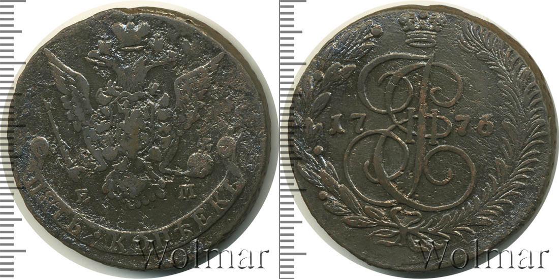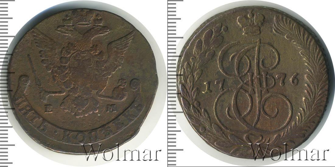 Екатеринбургский монетный двор. Биткин №# 661.625, "орёл образца 1770-1777 гг.", тираж 21 454 000, Уздеников №# 2739. По каталогу Wolmar # 155/24. 5 копеек ЕМ