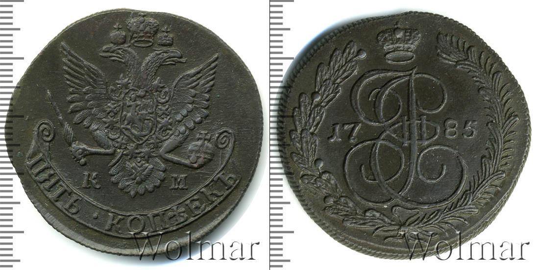 Основным элементом украшения диска является именной вензель императрицы Екатерины II. Заглавная буква «Е» переплетается с «I» и римской цифрой «II». Факсимиле правительницы дополнено годом эмиссии «1785». Венчает композицию символ монархии. Слева и справа от короны по краю диска изображены лавровая и пальмовая ветки. Внизу они связаны лентой.