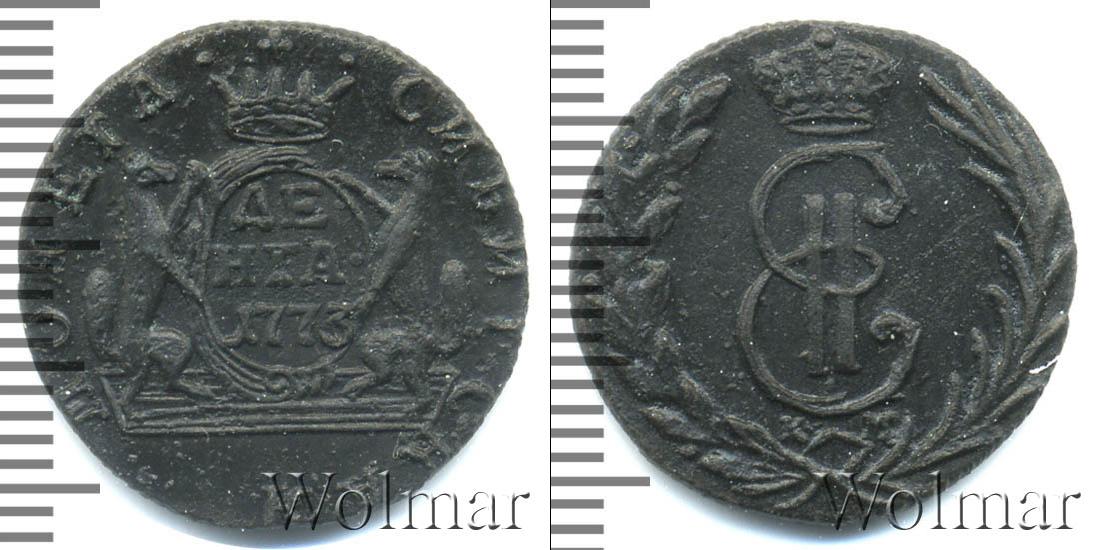 С оборотной стороны монеты картуш, удерживаемый соболями. На нем указаны номинал и год выпуска партии «ДЕНГА 1773». Вверху корона, а над ней крест. Вдоль канта слева и справа части надписи «МОНЕТА» и «СИБИРСКАЯ»