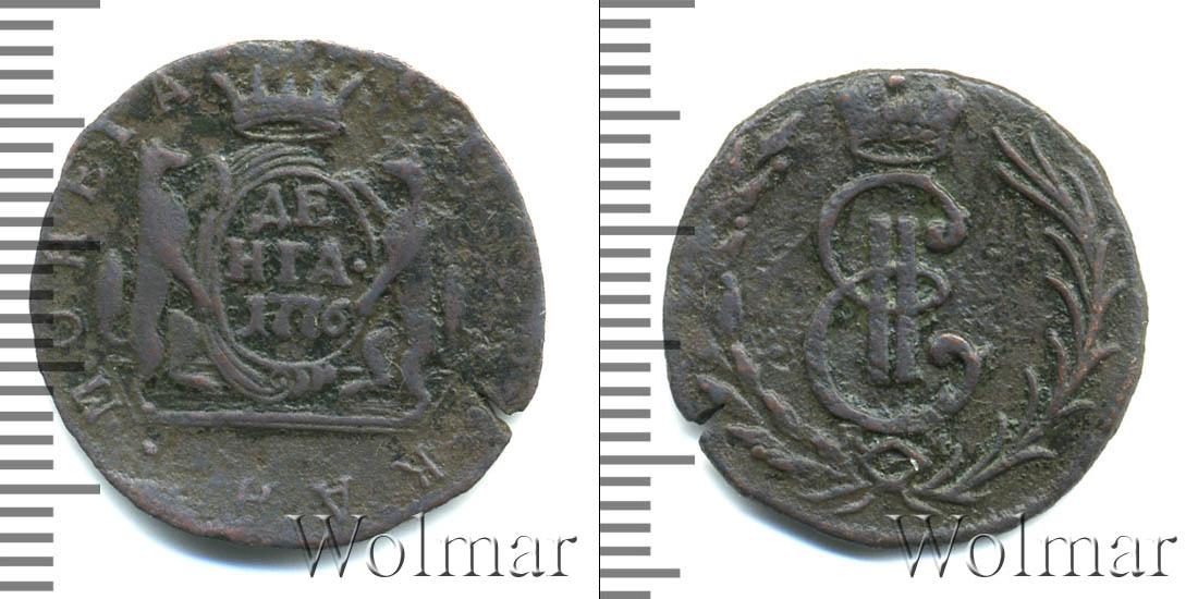 По краю диска слева выгравировано «МОНЕТА», а справа «СИБИРСКАЯ». В центре изображены соболи, удерживающие картуш с надписью «ДЕНГА 1776». Это отметки о номинале и дате эмиссии партии медных монет.