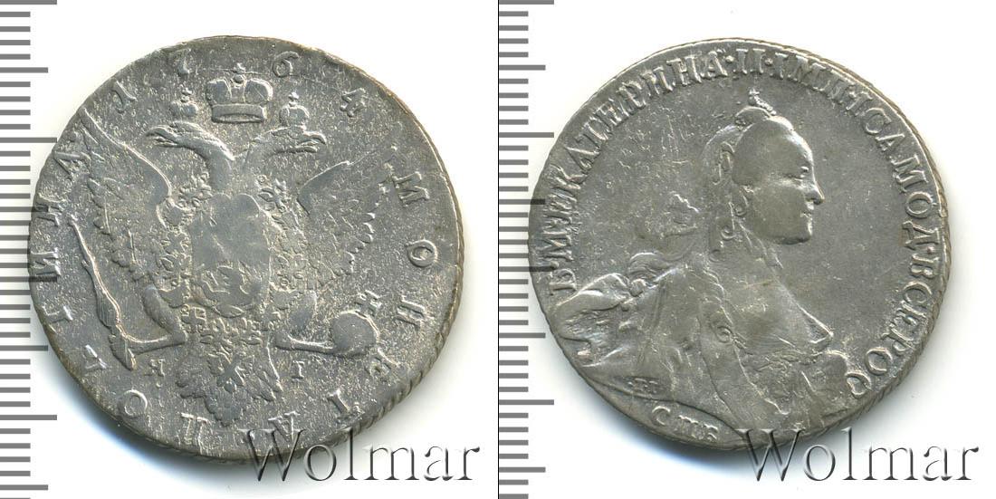 Представлен герб Российской второй половины девятнадцатого столетия. Вверху Большая корона России. Над ней отмечен год выпуска монеты: 1764. Слева выгравировано «ПОЛТИНА», а справа – «МОНЕТА». В нижней части диска инициалы минцмейстера «СА».