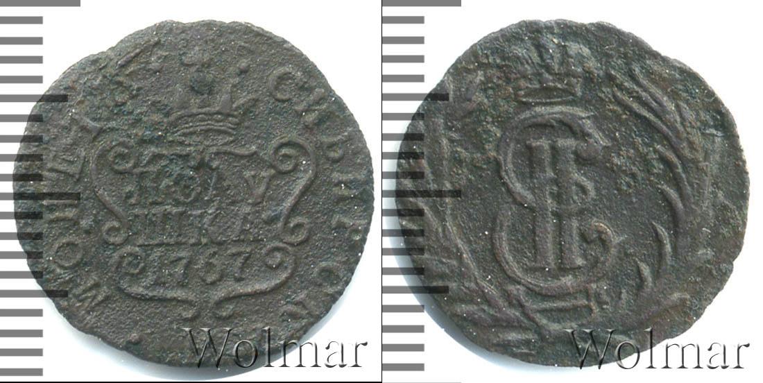 Большую часть диска монеты занимает вензель Екатерины Великой. Вверху по центру расположена Корона Российской Империи. Диск монеты украшает венок из лавровой и пальмовой ветвей, перевязанных лентой. Внизу отмечен монетный двор «К.М.».