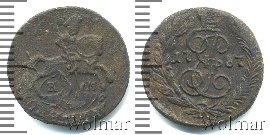 С оборотной стороны монеты мы видим вензель императрицы Екатерины Второй, украшенный Большой короной Российской Империи. Изображение разделяет надпись о дате эмиссии монеты «1787». Внизу расположены лавровая и пальмовая ветви, перевязанные ленточным бантом.