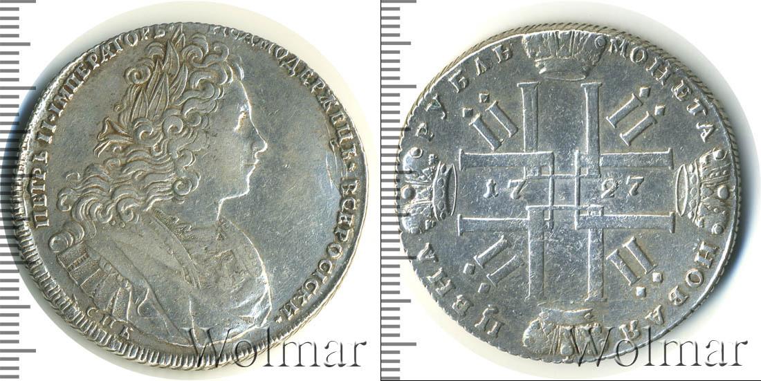 Редкий рублевик Петра II! Шнуровой гурт. Непрочекан нижней части портрета.