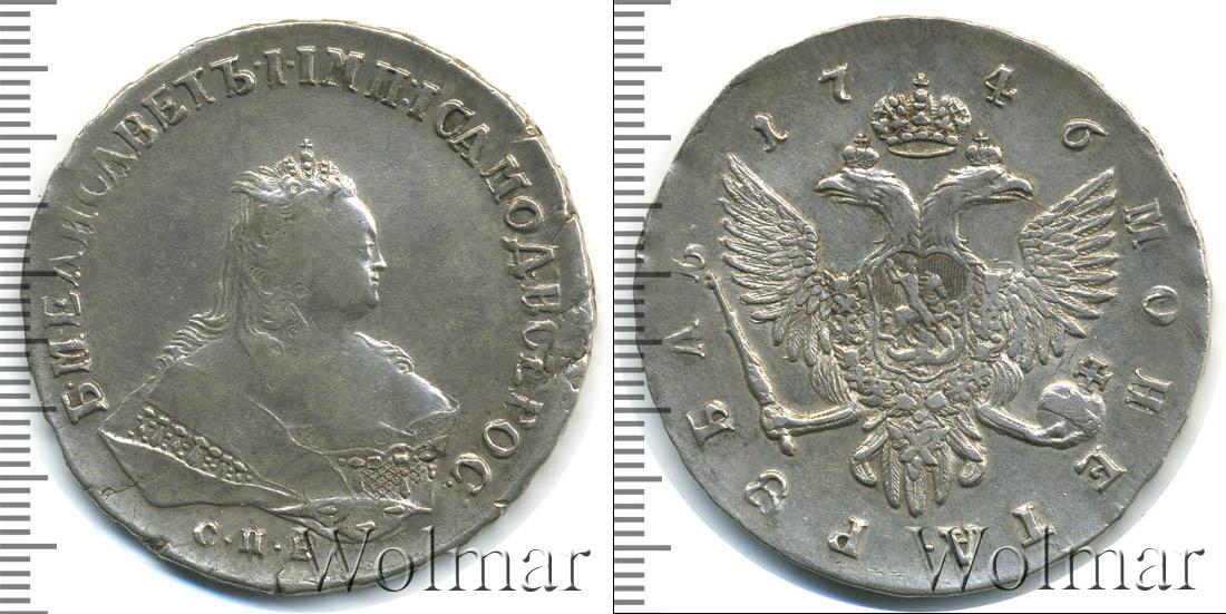 В центре диска изображен двуглавый орел в императорской короне, сжимающий в лапах скипетр и державу. Вверху около Большой короны Российской Империи отмечена дата эмиссии партии «1746». По краю нанесен номинал: МОНЕТА РУБЛЬ.
