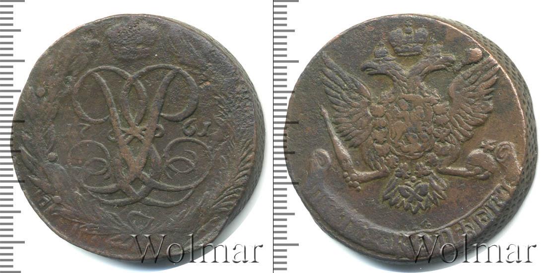 Представлено вензельное изображение Елизаветы Петровны (сочетание букв ЕР). Его венчает Большая корона Российской Империи. По центру мы видим отметку о дате эмиссии монеты «1761». Внизу переплетенные между собой лавровая и дубовая ветви.