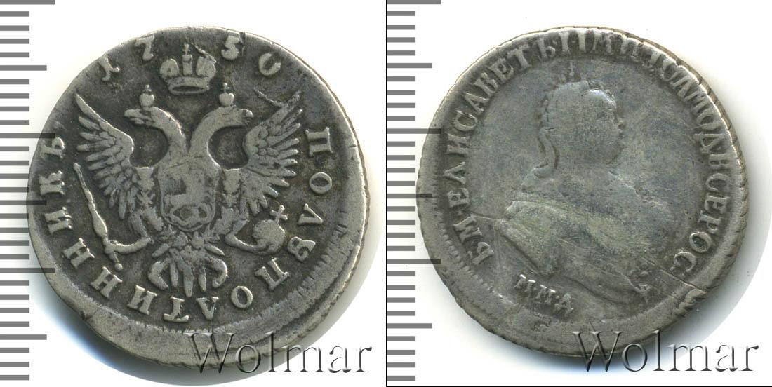 По краю диска вверху расположена надпись«1750» - год выпуска партии серебряных монет. В центре диска Государственный герб Российской Империи, представляющий собой двуглавого орла с короной, скипетром и державой. Вдоль канта выгравировано «ПОЛУПОЛТИННИК». Это номинал монеты.