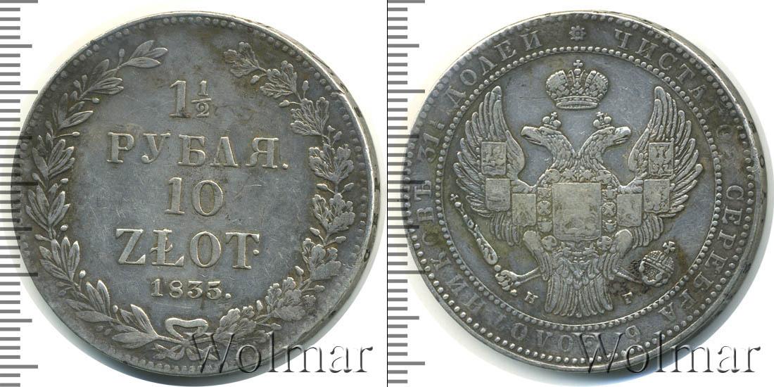 Цена монеты 1 1/2 рубля—10 злотых 1835 года в городе Москва на сегодня, 15 марта 2026 года