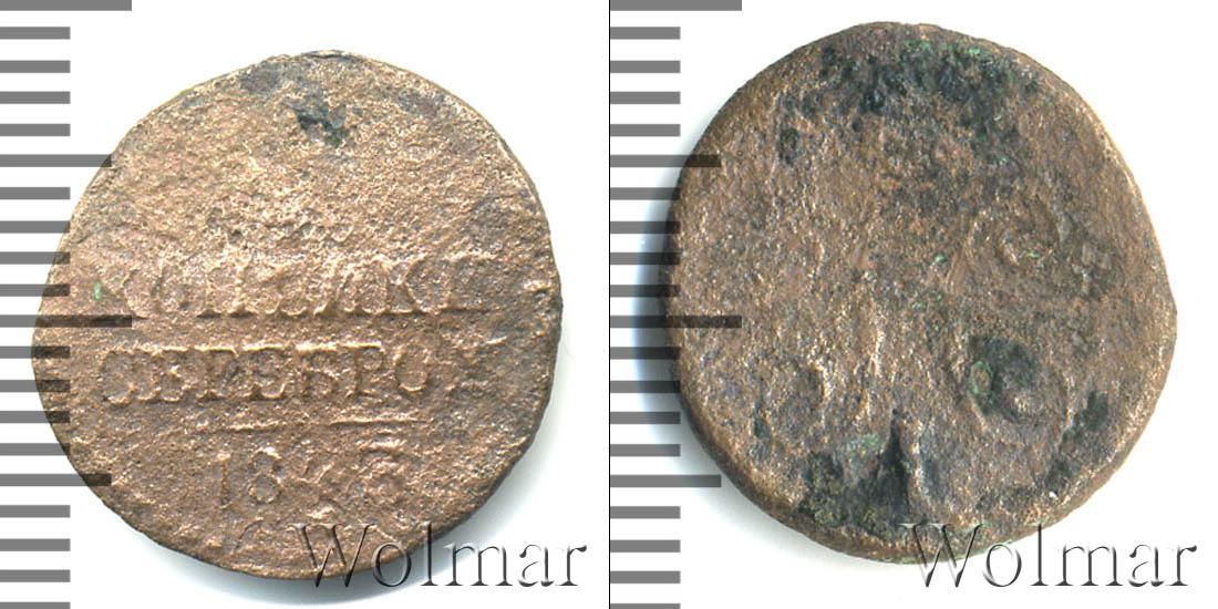 1843 Дефект чеканки, патина. 1/4 копейки СМ Cu Дефект чеканки,