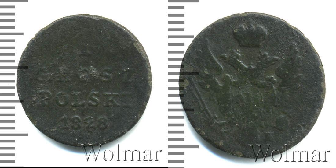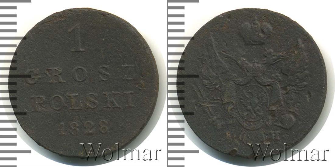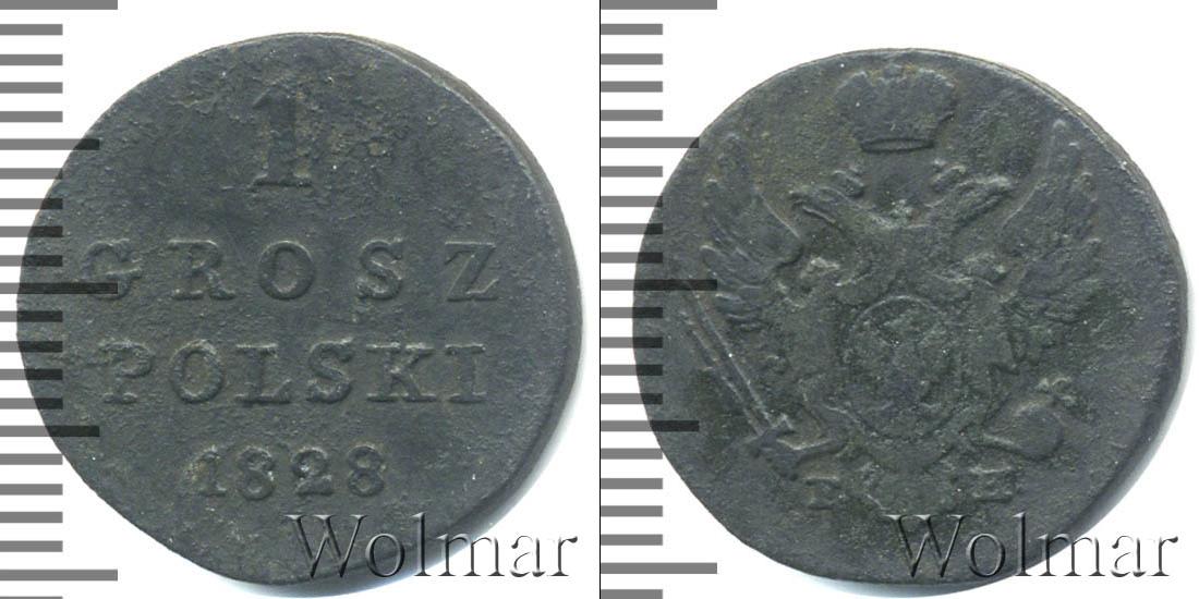 С оборотной стороны монеты отмечены номинал и год выпуска партии этих медных монет для Польши. Сверху вниз начертано: 1 GROSZPOLSKI (польский грош) 1828.