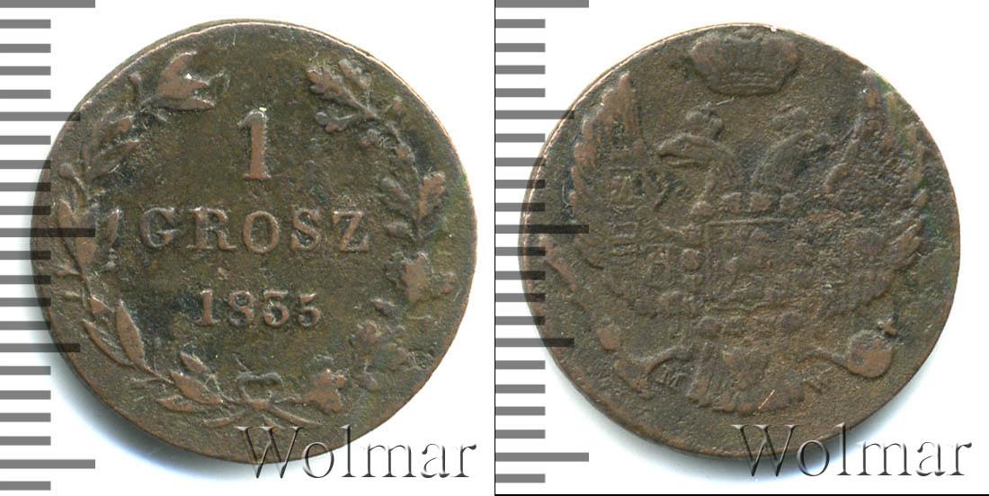 Номинал указан в две строки: 1, GROSZ. Ниже — год выпуска 1835. Номинал и год выпуска окружает венок из двух ветвей: справа — дубовая, слева — лавровая. Сверху ветви разомкнуты, снизу соединены лентой.