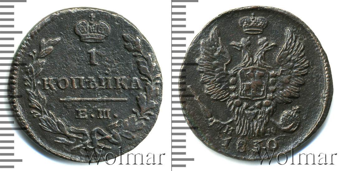 Масса готового изделия составляет 6,83 г., а диаметр равен 24 мм. Представлен герб Российской Империи (двуглавый орел с мечом, скипетром и державой; на груди у него символ города Москвы). Вверху мы видим Императорскую корону России. Внизу инициалы минцмейстера: А.М. Рядом начертано: 1830.