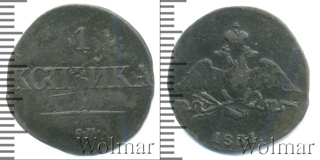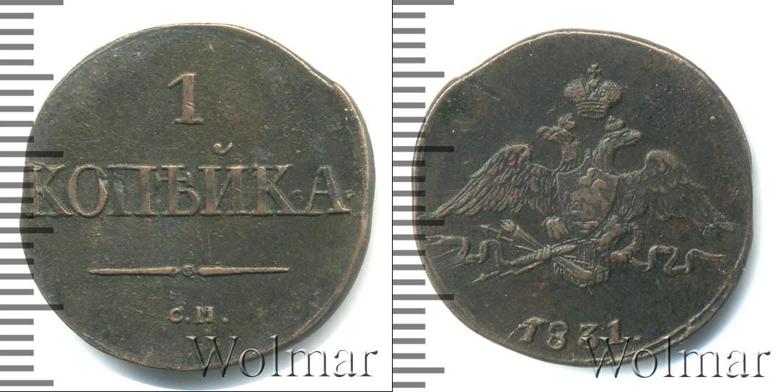 По центру изображен двуглавый орел с гербом города Москвы на груди. Вверху мы видим Большую корону Российской Империи. Внизу указаны инициалы минцмейстера Ф.Х. и год выпуска партии 1831.