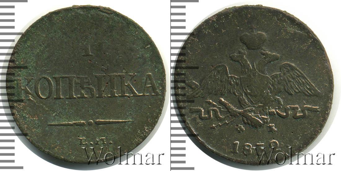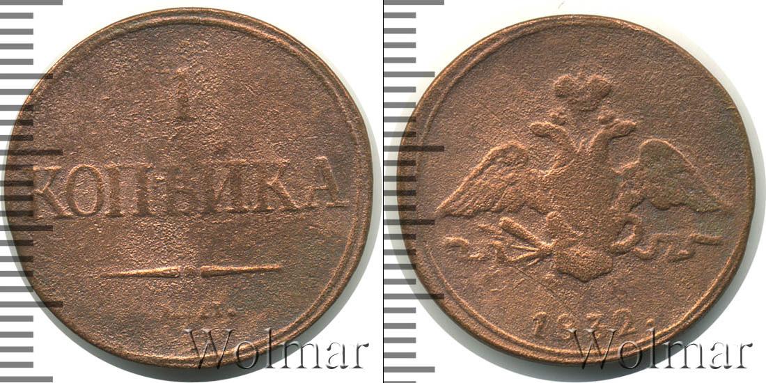 Медная монета массой 4,55 г. и диаметром 24 мм. В центральной части диска – герб Российской Империи (первой половины девятнадцатого века). Внизу обозначение минцмейстера Ф.Х. Полукругом начертано: 1832 (дата эмиссии монеты).