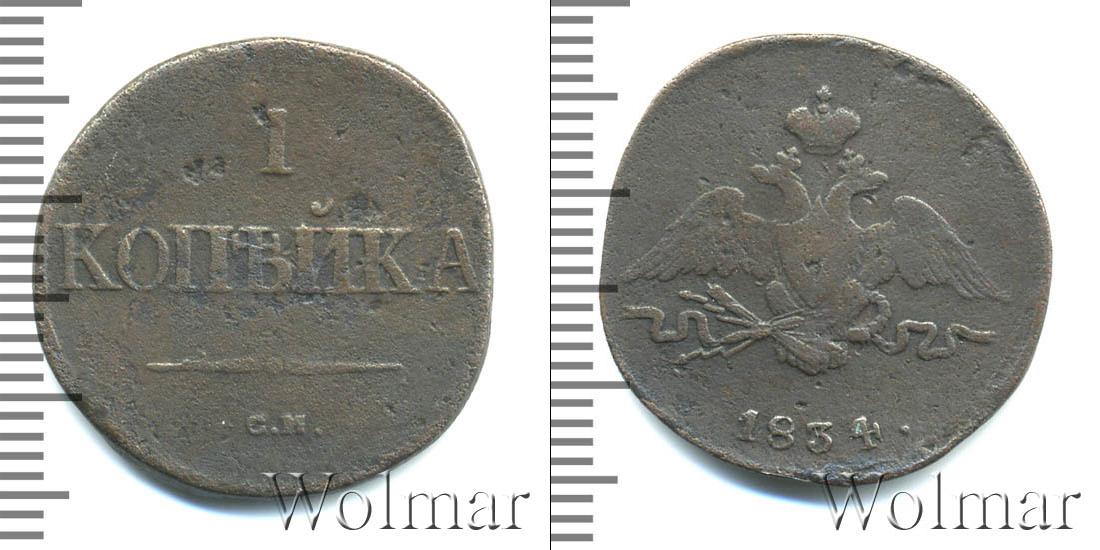 Цена монеты 1 копейка 1834 года в городе Москва на сегодня, 16 декабря 2025 года