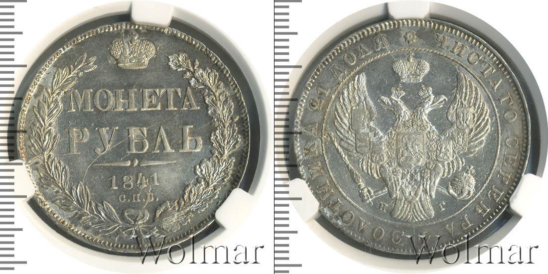 В слабе HHP. Санкт-Петербургский монетный двор. Биткин №# 808.192, "орёл образца 1841", тираж 6 155 000, Уздеников №# 1598, Петров - 1,5 рубля. По каталогу Wolmar # 75/47. 1 рубль Петров - 1,5 рубля СПБ НГ