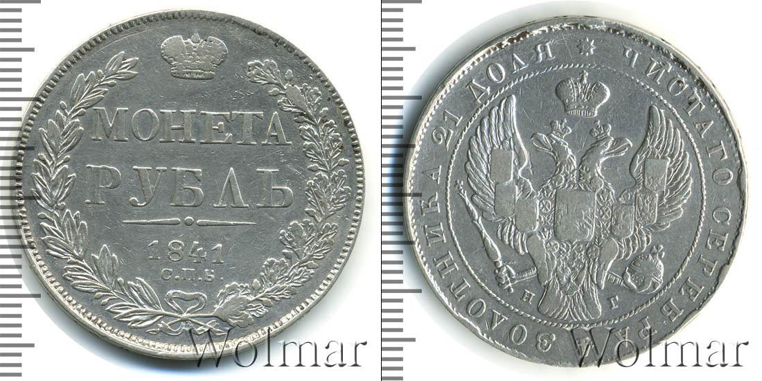 Царапины. Санкт-Петербургский монетный двор. Биткин №# 808.192, "орёл образца 1841", тираж 6 155 000, Уздеников №# 1598, Петров - 1,5 рубля. По каталогу Wolmar # 75/47. 1 рубль Петров - 1,5 рубля. СПБ НГ