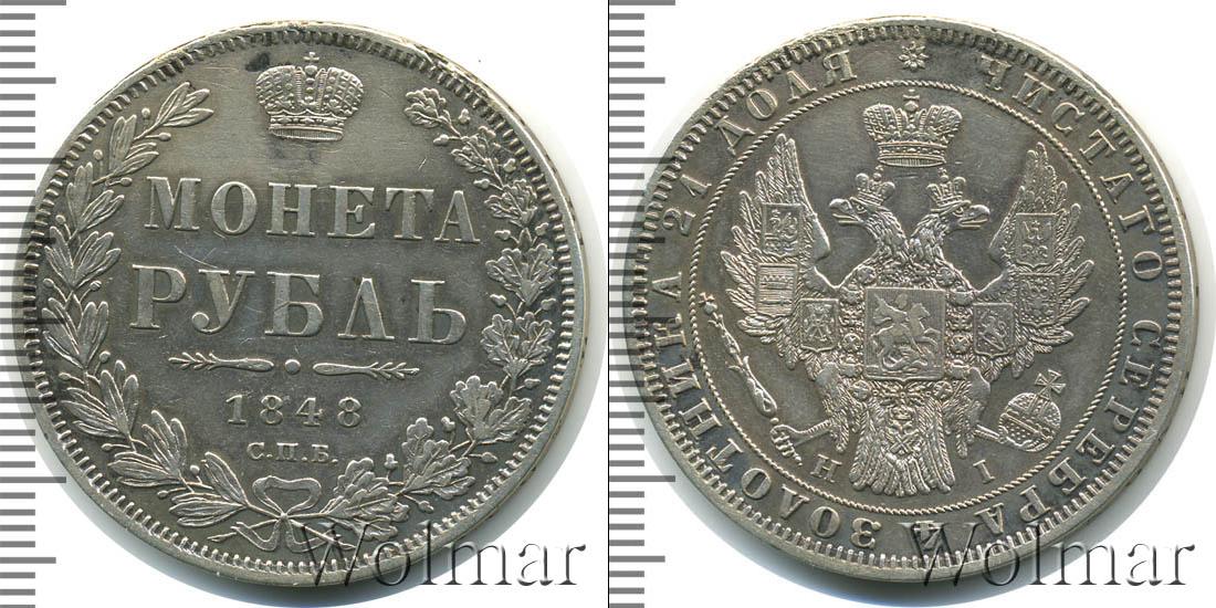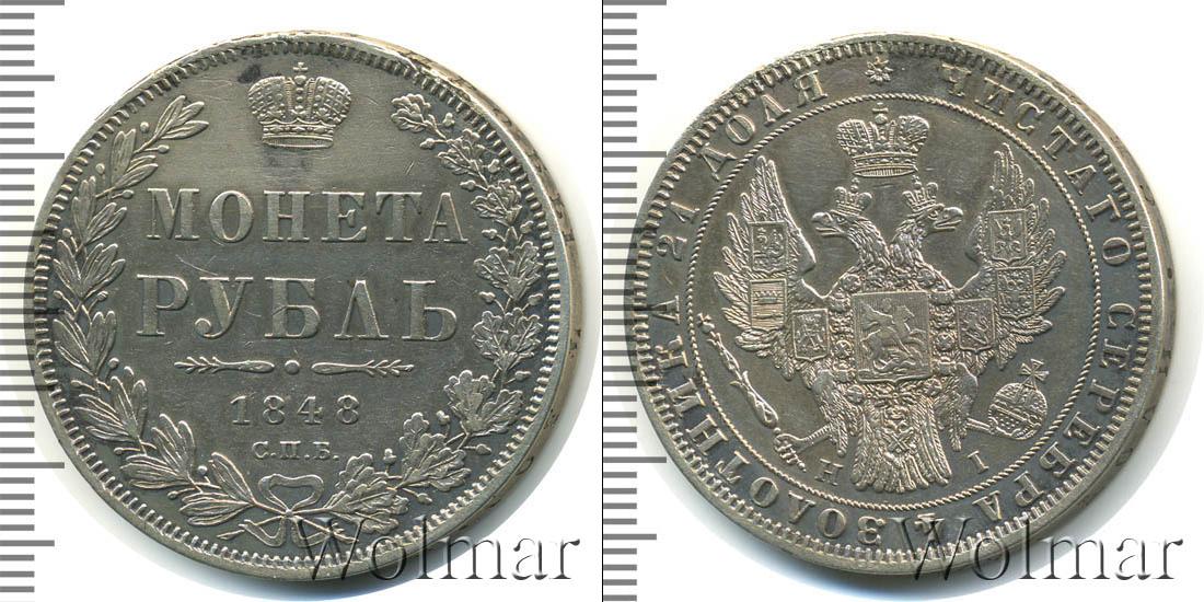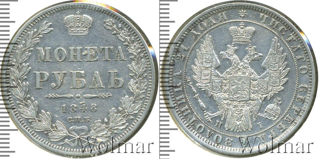 Санкт-Петербургский монетный двор. Биткин №# 809.213, "Орёл образца 1847-1849 гг.", тираж 1 542 101, Уздеников редкость - "точка", №# 1659, Петров - 1,5 рубля. Wolmar # 75/65. 1 рубль Петров - 1,5 рубля. СПБ HI
